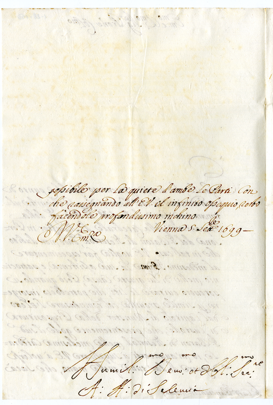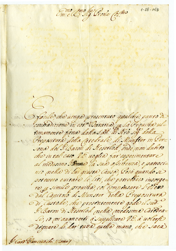 Lettera del vescovo di Seleucia al cardinale Panciatici sulla Prepositura della Cattedrale di Munster in persona del barone di Heserlod (1699 settembre 5)