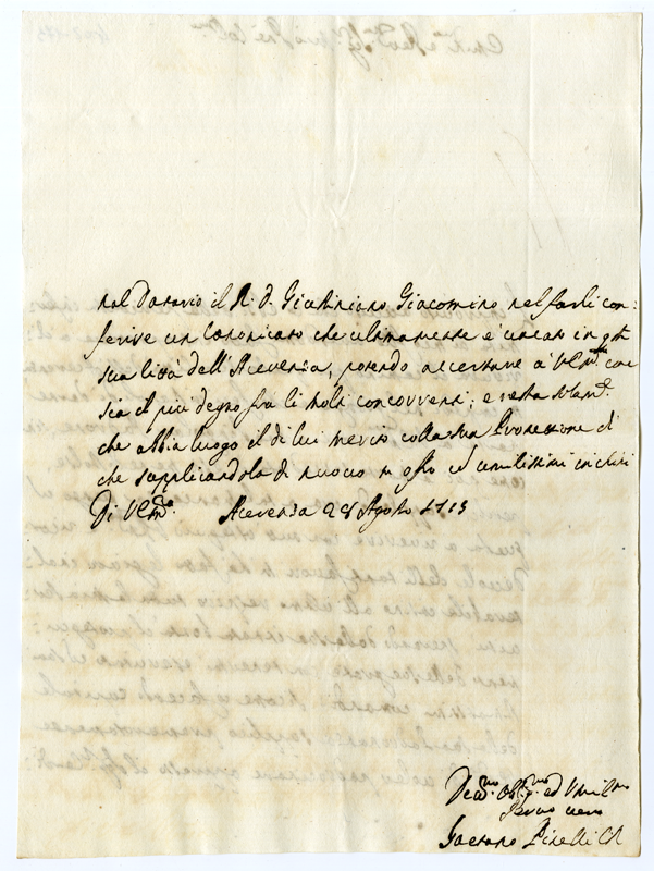 Lettera di Gaetano Piselli al Cardinale Annibale Albani (1715 agosto 28)