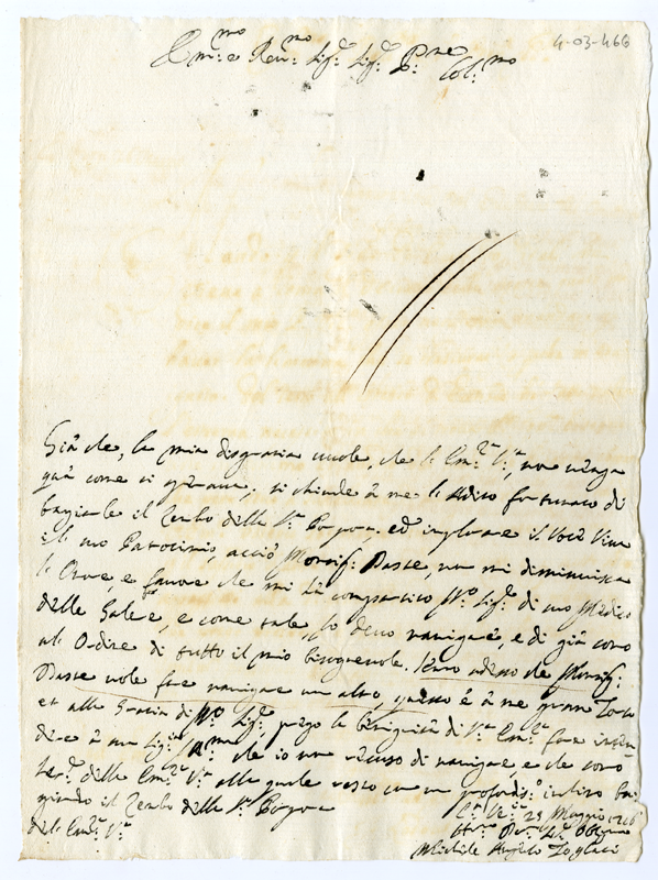 Lettera di Michele Angelo Togliari al Cardinale Annibale Albani (1716 maggio 25)