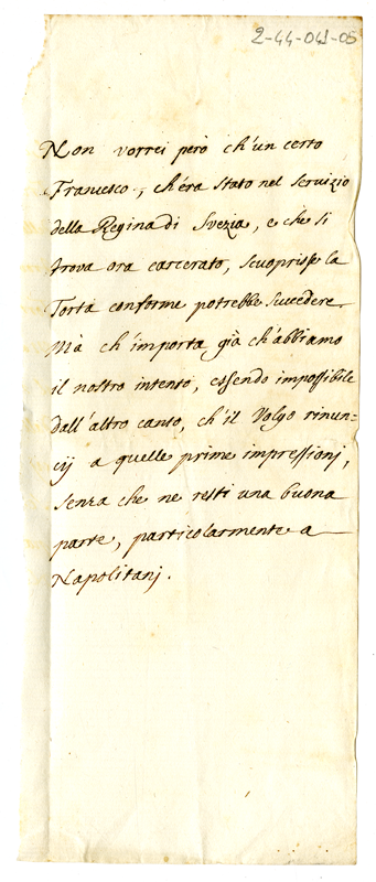 Timore che il carcerato Francesco scopra la verità delle cose (1700-1721)