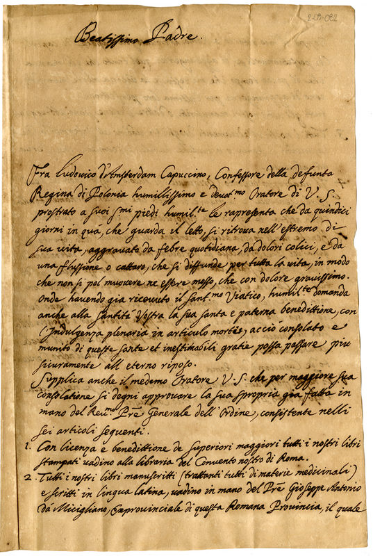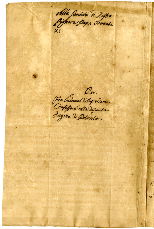 Lettera di fra Ludovico d'Amsterdam cappuccino a Clemente XI (1700-1721)