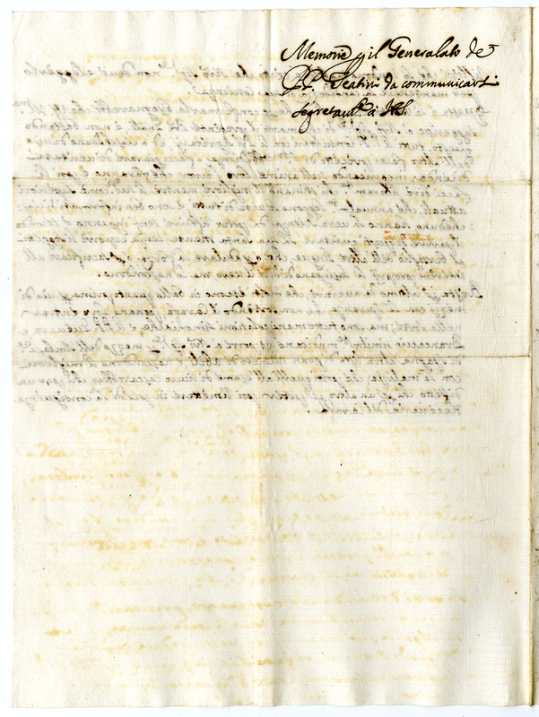 Memorie per il Generalato de Padri Teatini da comunicarsi segretamente a Nostro Signore (1700-1721)