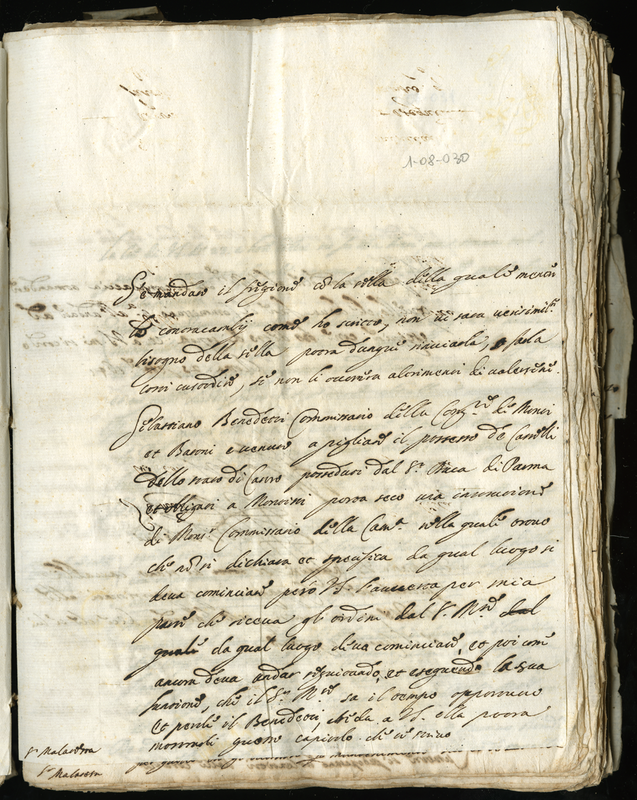 Notizie e disposizioni circa l'arrivo di Sebastaino Benedetti commissario della Congregazioni dei Baroni