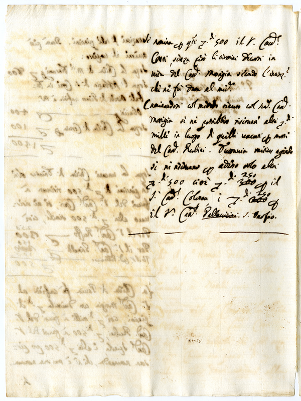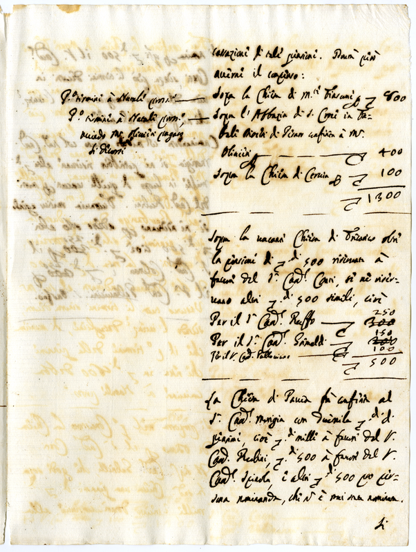 Distribuzione di pensioni di varie chiese vacanti a Cardinali e Monsignori da parte di Papa Clemente XI (1700-1721)