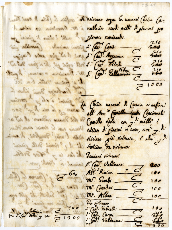 Distribuzione di pensioni di varie chiese vacanti a Cardinali e Monsignori da parte di Papa Clemente XI (1700-1721)