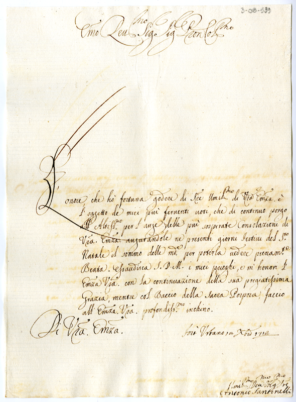 Lettera di Antonio Santinelli al cardinale Annibale Albani (1712 dicembre 14)