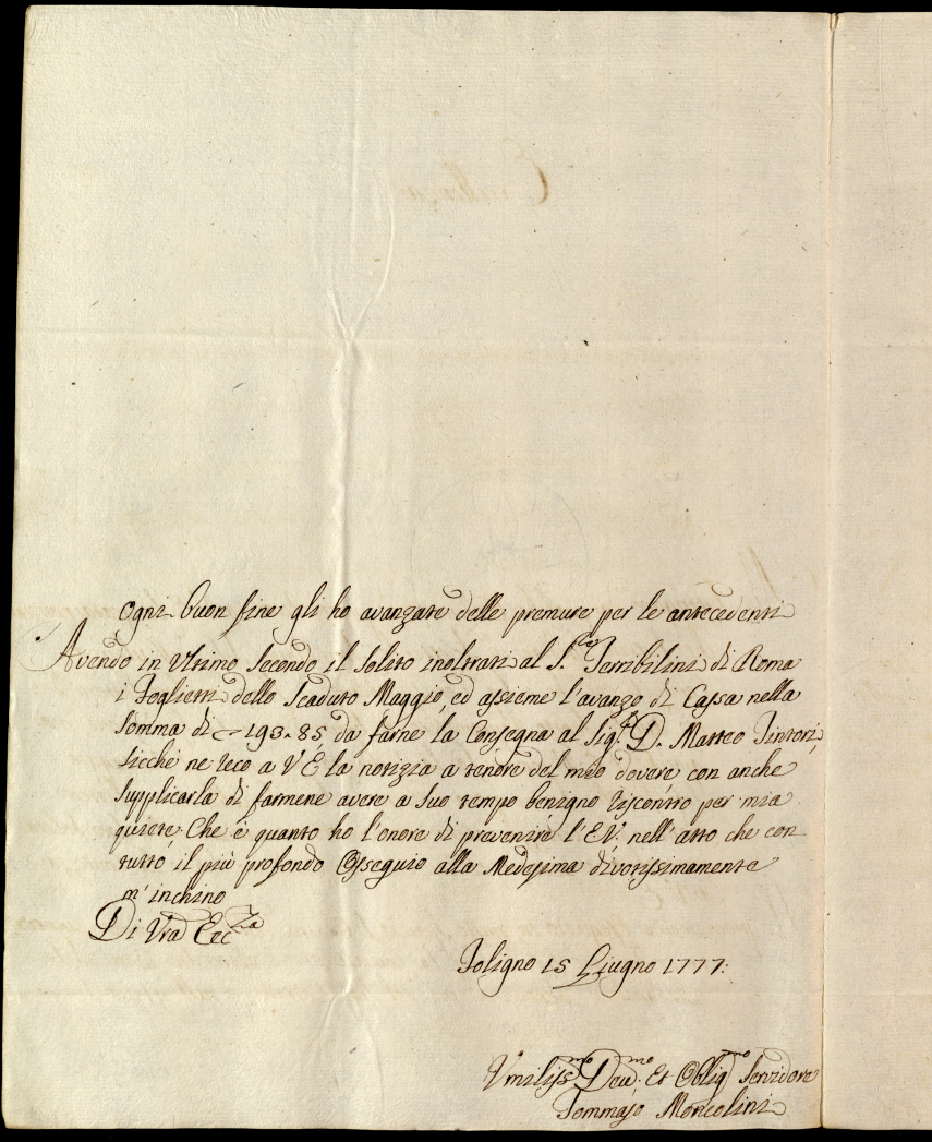 3. Lettere ricevute in Urbino nella permanenza in Urbino nei mesi di maggio, giugno e luglio 1777