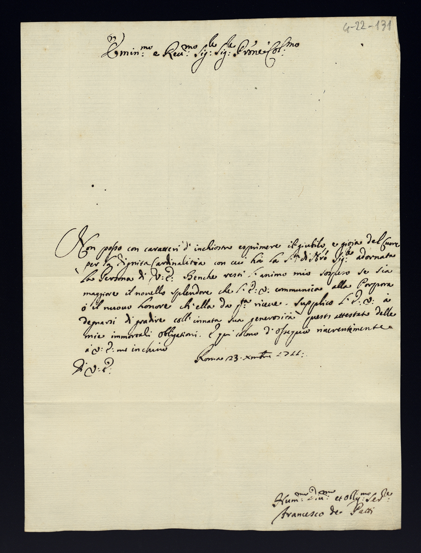 Lettere di congratulazioni per la promozione di Sua Eccellenza al Cardinalato