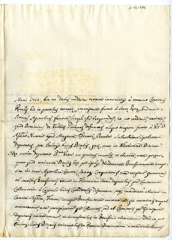 Lettera di Giovanni Battista Missiroli, vescovo di Bertinoro, a Clemente XI (1712 maggio 8)