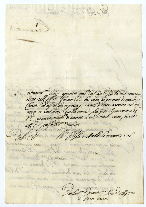 Lettera di Decio Iaconi al Cardinale Annibale Albani (1716 marzo 7)