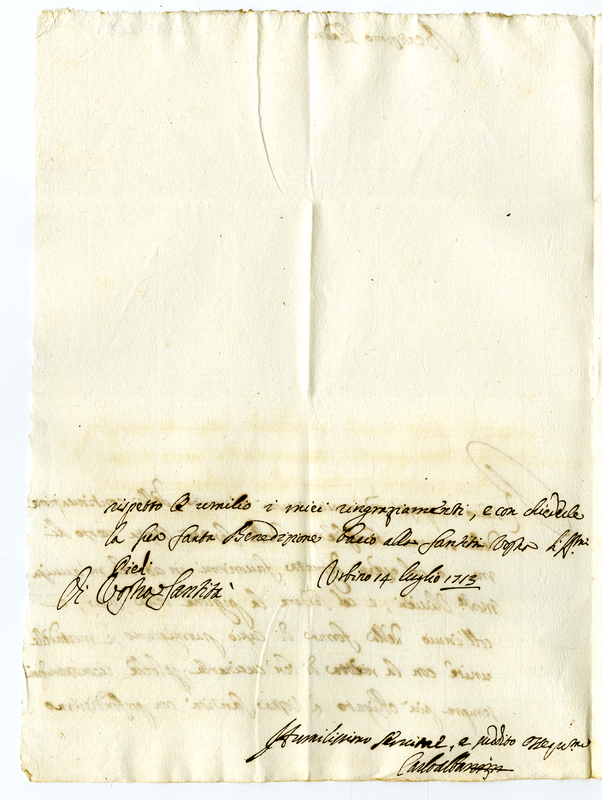 Lettera di Carlo Albani a papa Clemente XI (1713 luglio 14)