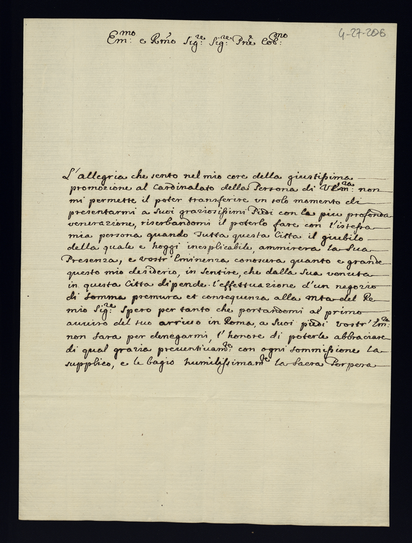 Lettere di congratulazioni per la promozione di Sua Eccellenza al Cardinalato. Tomo II