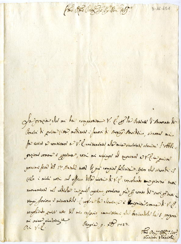 Lettera di Giacinto Vincioli al cardinale Annibale Albani (1727 dicembre 9)