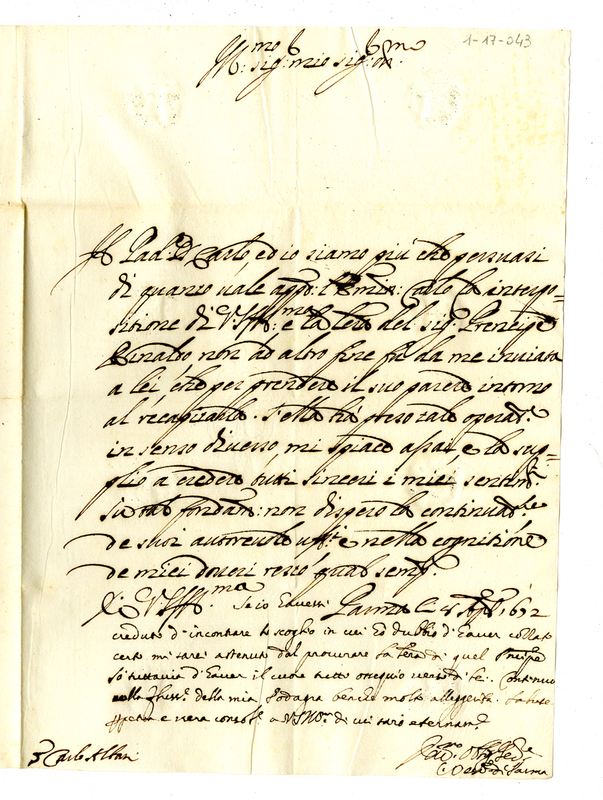 Lettera di Carlo Nembrini, vescovo di Parma, a Carlo Albani (1672 aprile 8)