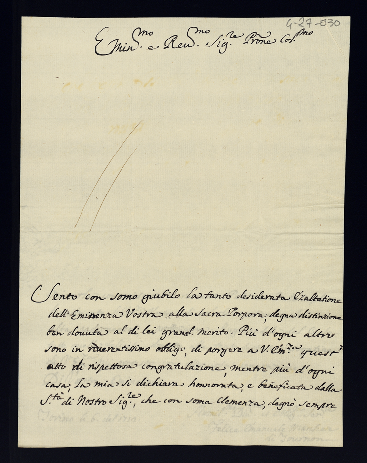 Lettere di congratulazioni per la promozione di Sua Eccellenza al Cardinalato. Tomo II