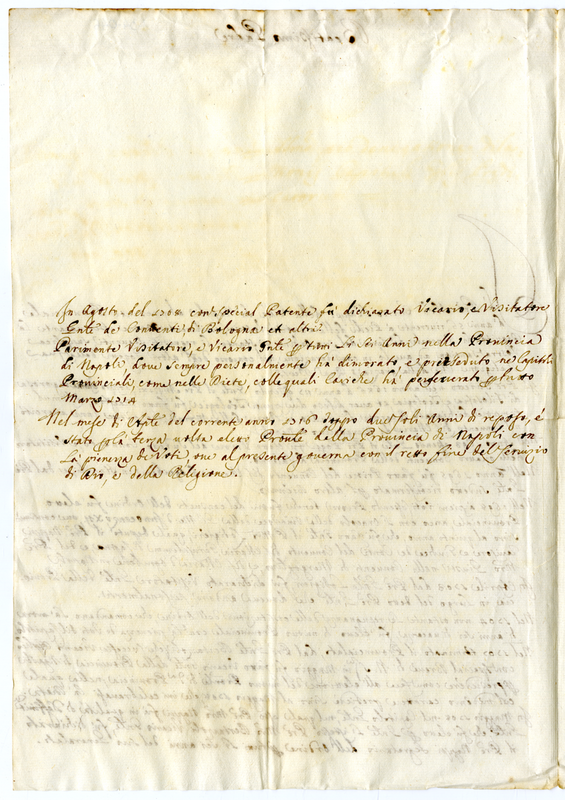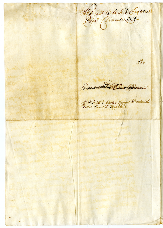 Lettera del Padre Maestro Enrico Nappi Provinciale della Provincia di Napoli a Papa Clemente XI (1716 aprile)