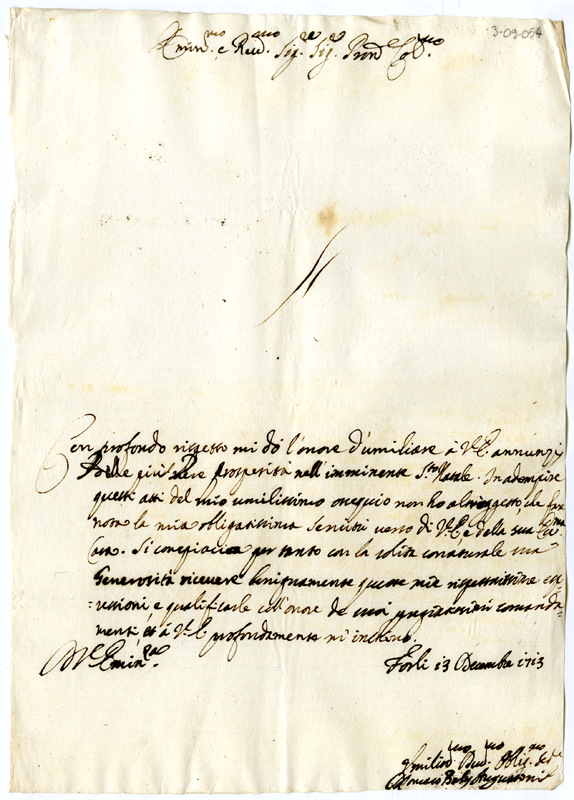 Lettera di Tommaso balì Augustoni al cardinale Annibale Albani (1713 dicembre 13)