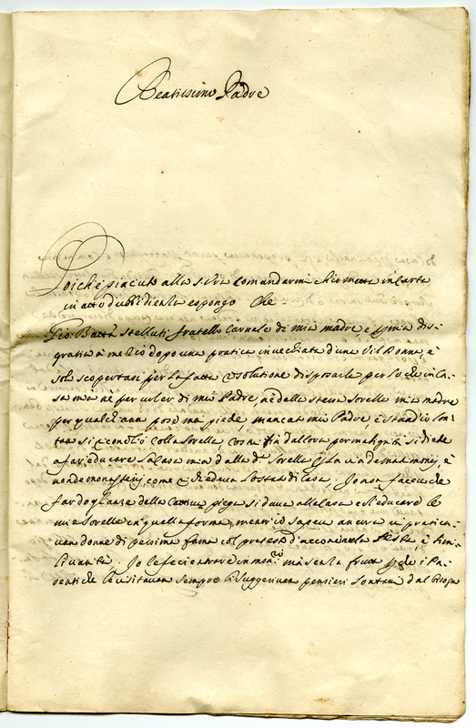 Espone il comportamento di Giovanni Battista Stelluti fratello carnale di sua madre e zio per sua disgrazia nei confronti della conduzione della casa del Venturini in sua assenza