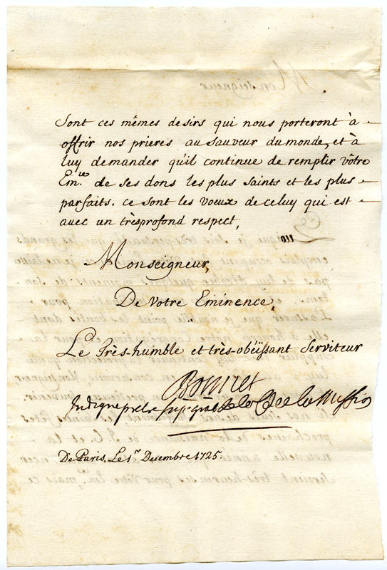Lettera di Bonnet indegno prete al cardinale Annibale Albani (1725 dicembre 1)