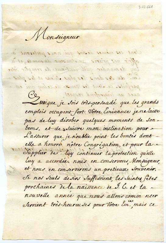 Lettera di Bonnet indegno prete al cardinale Annibale Albani (1725 dicembre 1)
