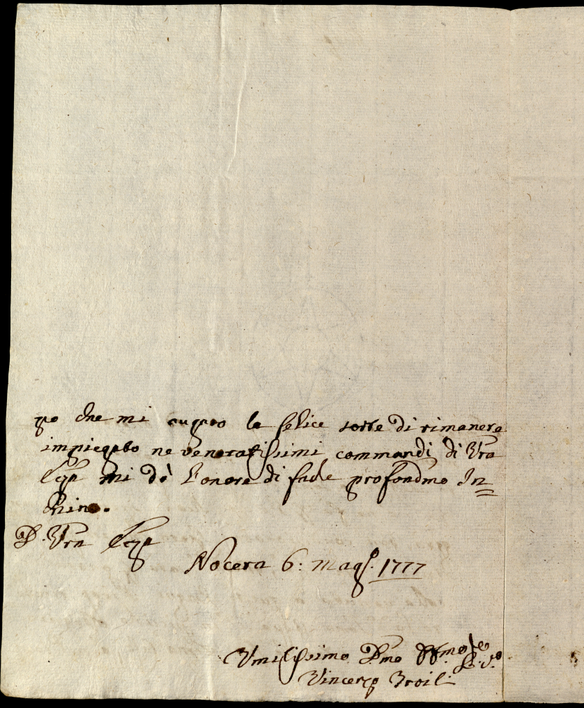 Lettere ricevute in Urbino nella permanenza in Urbino nei mesi di maggio, giugno e luglio 1777
