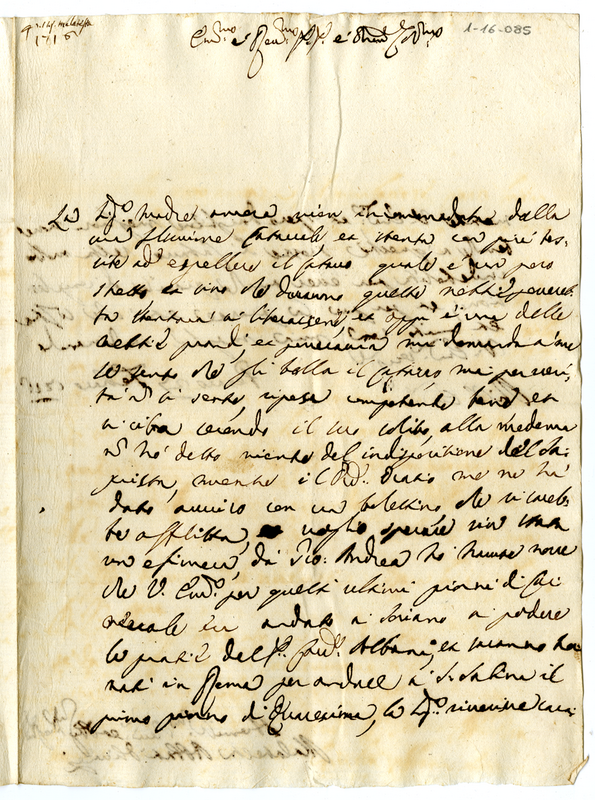 Lettera di Malatesta Olivieri degli Abbati ad un cardinale (1716 febbraio 27)