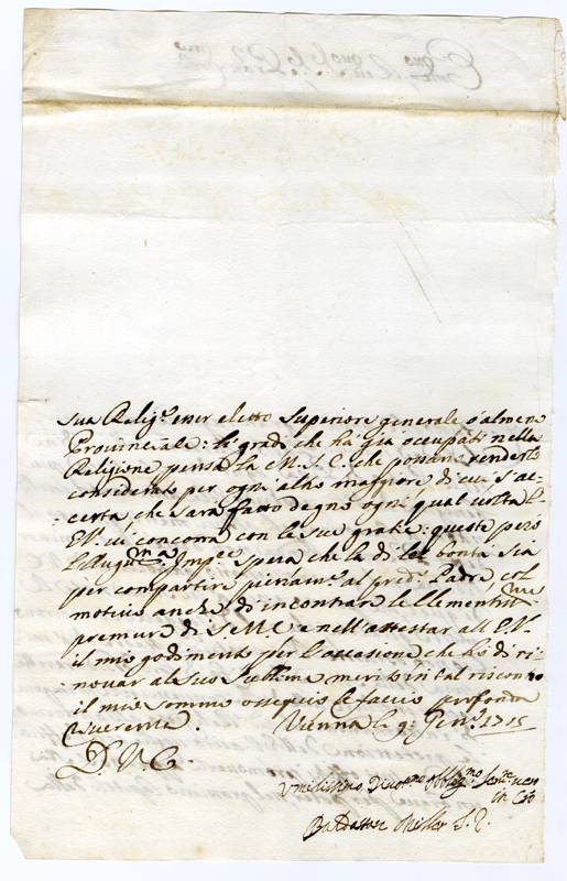 Lettera del padre Baldassarre Miller al CArdinale Annibale Albani (1715 gennaio 9)