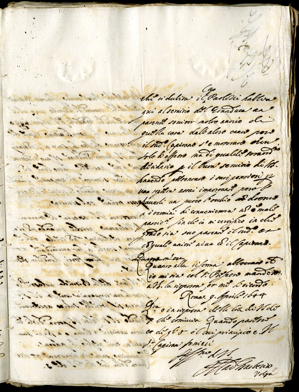 Lettera del cardinale Barberini Francesco senior a Malatesta Albani (1644 aprile 9)
