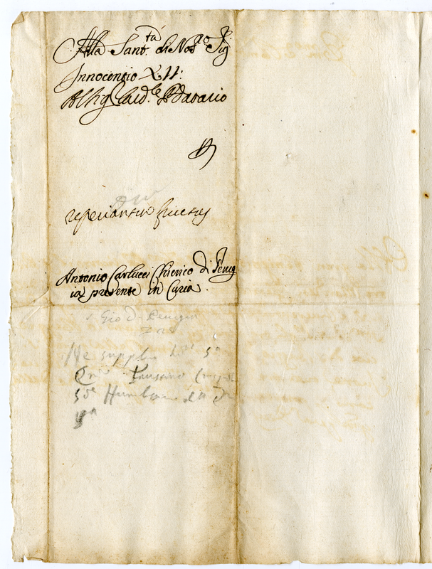 Lettera di Antonio Carlucci a Papa Innocenzo XII (1691-1700)