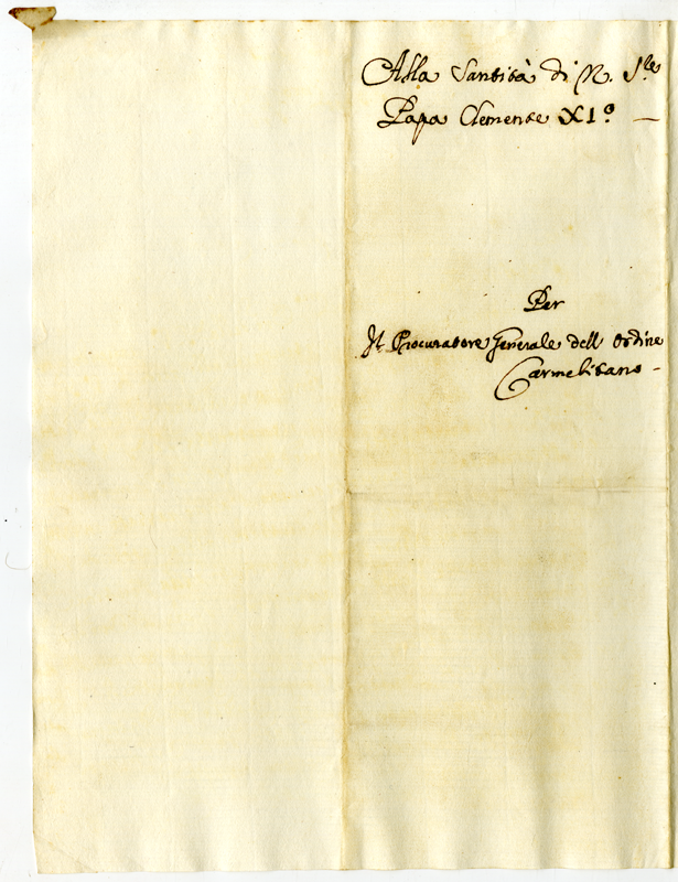 Lettera del procuratore generale dell'ordine carmelitano a papa Clemente XI (1700-1721)