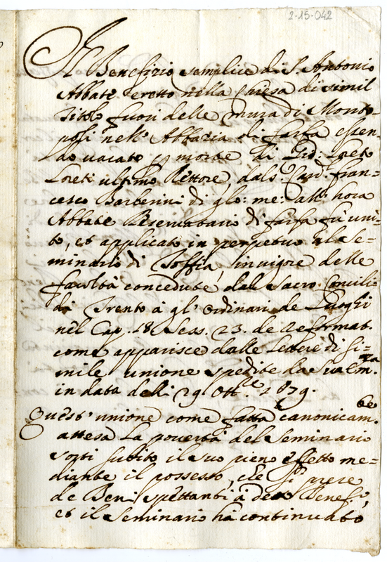 Sul beneficio semplice di Sant'Antonio Abbate eretto fuori delle mura di Montopoli vacante per morte di Giovanni Loreto Loreti (1691-1700)