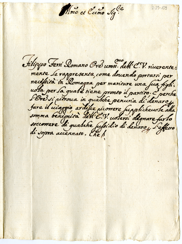 | dc.description | Chiede qualche sussidio di danaro per potersi recare in Romagna per maritare una sua figlia | |