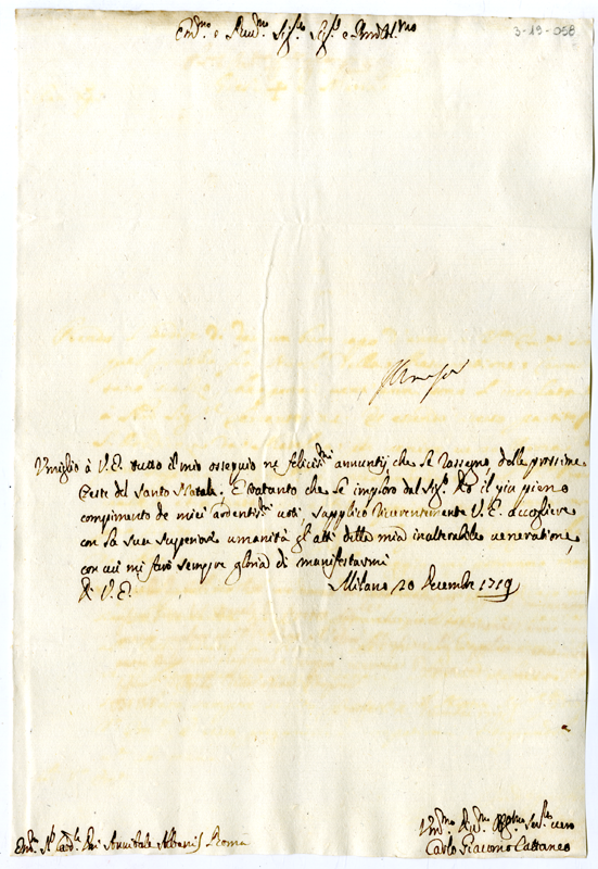 Lettera di Carlo Giacomo Cattaneo al cardinale Annibale Albani (1719 dicembre 20)