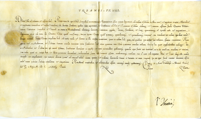 Breve di Papa Urbano VIII al Cardinale Antonio Barberino