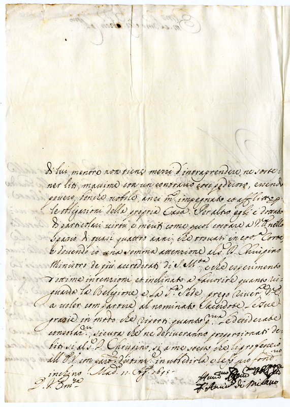Lettera dell'arcivescovo di Milano al cardinale Panciatici (1695 agosto 11)