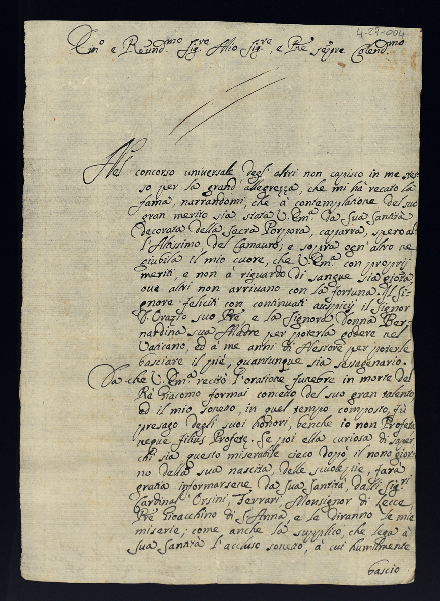 Lettere di congratulazioni per la promozione di Sua Eccellenza al Cardinalato. Tomo II