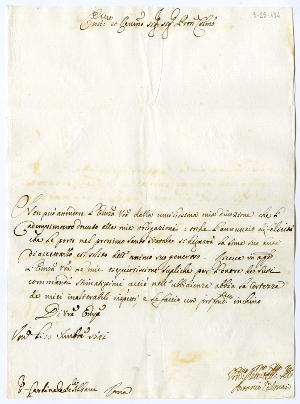 Lettera di Antonio Vidman al cardinale Annibale Albani (1721 dicembre 13)