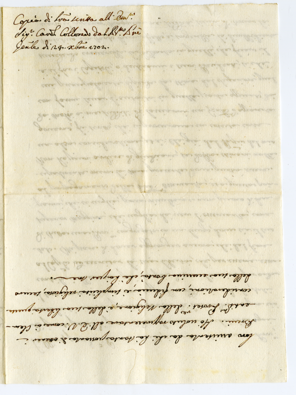 Copia di lettera scritta all'eminentissimo sig. card. Colloredo dal b. padre generale di 24 dicembre 1702
