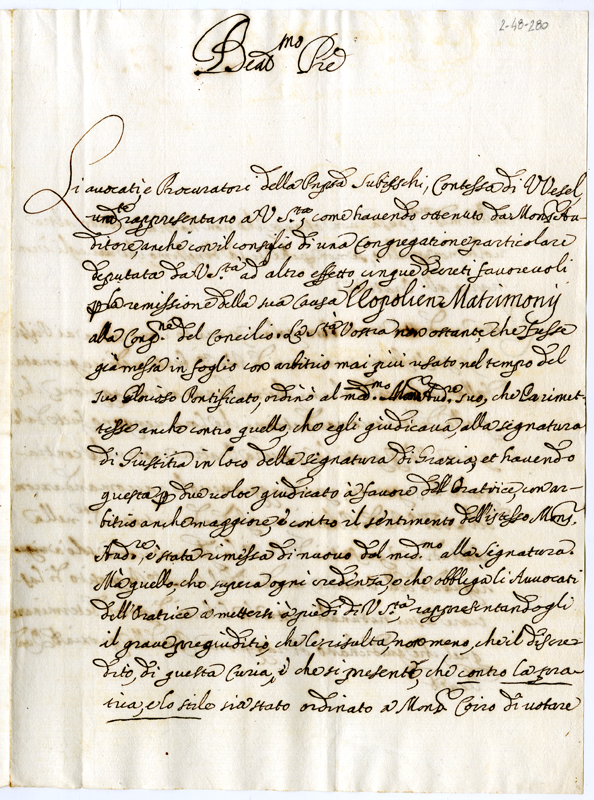 Lettera della principessa Sobieski a papa Clemente XI (1700-1721)