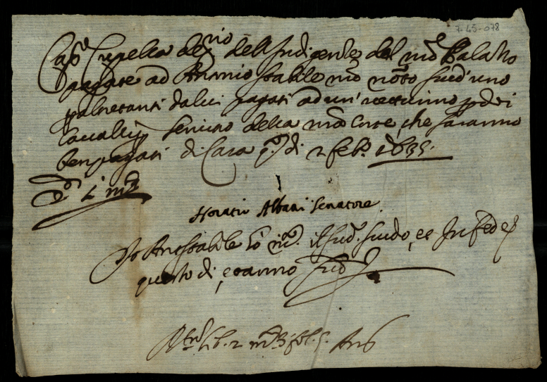 Ordini di vari pagamenti sottoscritti dal senatore Orazio Albani diretti al Depositario dell'Indigenze del Palazzo Capitolino