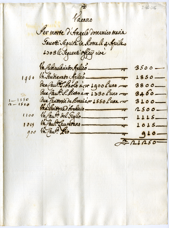Uffici vacanti per morte di Angelo Domenico Maria Gavotti (1703 aprile 4)