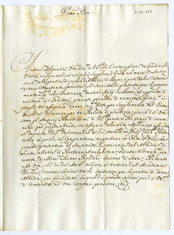 Lettera di Antonio Filomarini a Clemente XI (1700-1721)
