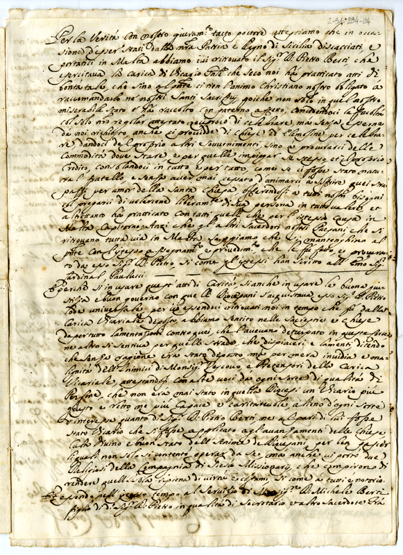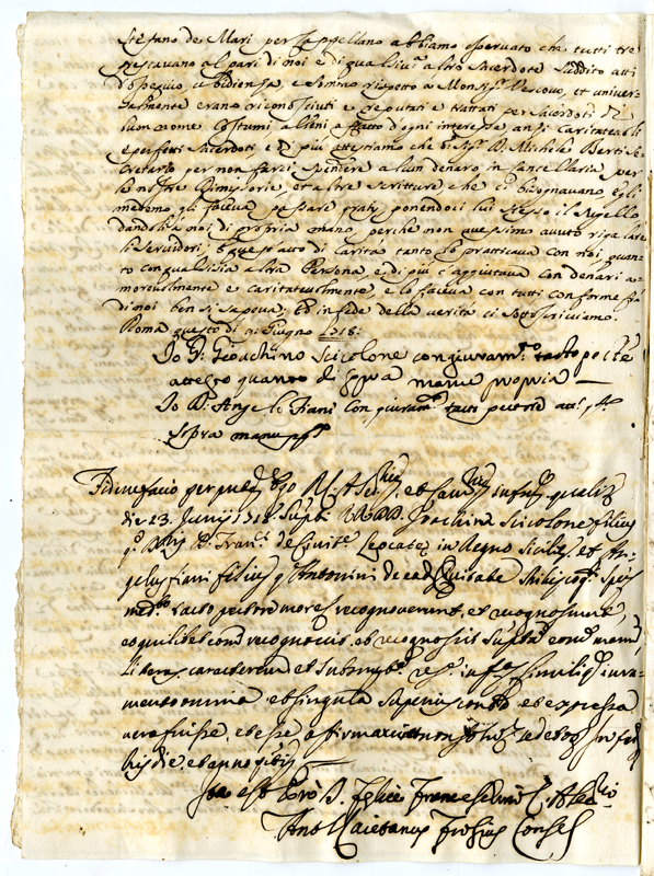 Attestato di Gioacchino Scicolone e Angelo Fiani in favore di don Pietro Berti (1718 giugno 9)