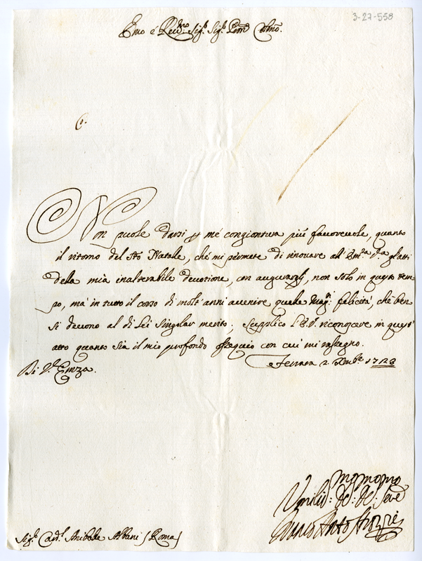 Lettera di Francesco Antonio Strozzi al cardinale Annibale Albani (1723 dicembre 2)