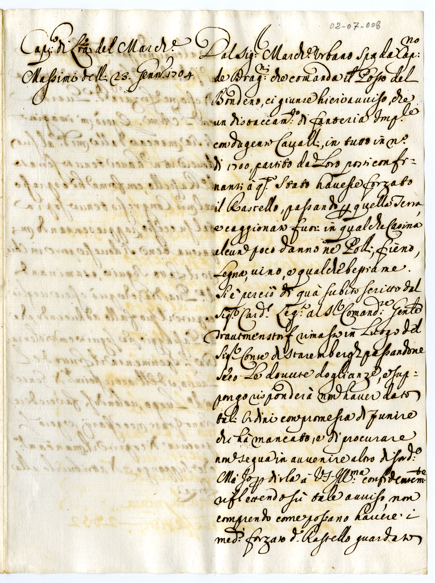 Capitolo di lettera del marchese Massimi delli 23 gennaio 1704