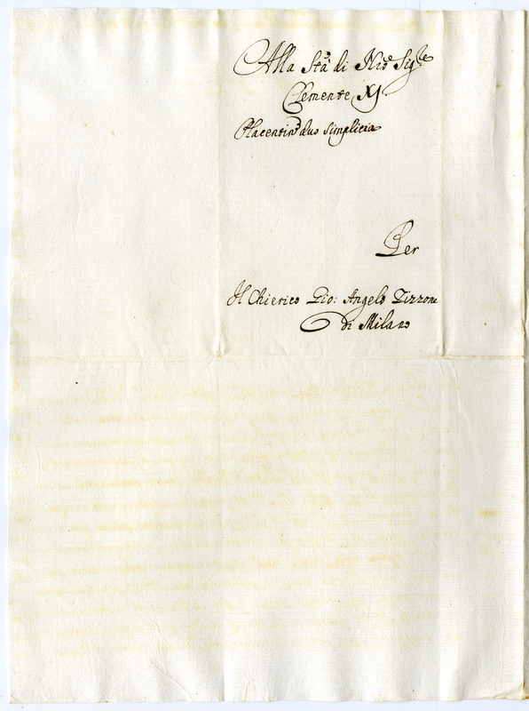 Lettera del chierico Giovanni Angelo Zizzone a papa Clemente XI (1700-1721)