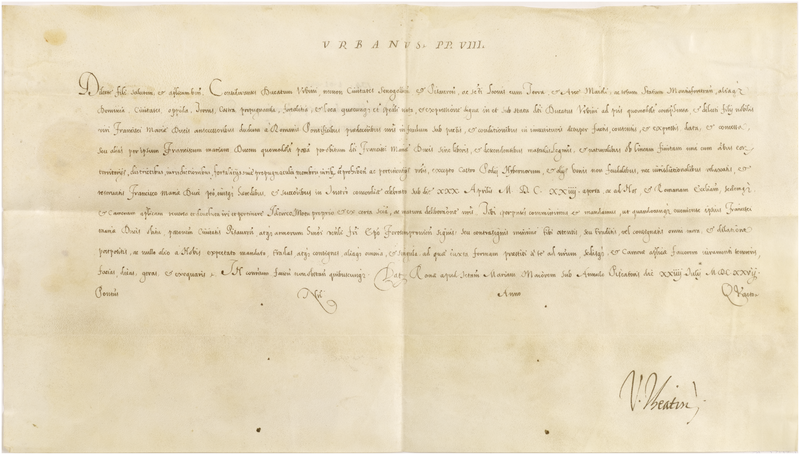 Breve di papa Urbano VIII al gonfaloniere delle armi della città di Pesaro