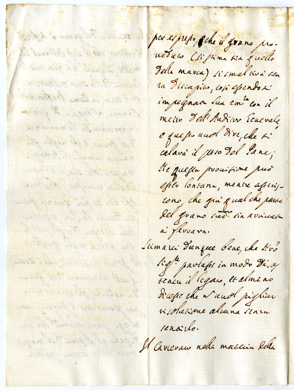 Pensiero espresso dal cardinale Spinola sul modo di gestire il problema dei grani in Bologna dal cardinale Grimaldi. Altre notizie (1700-1721)