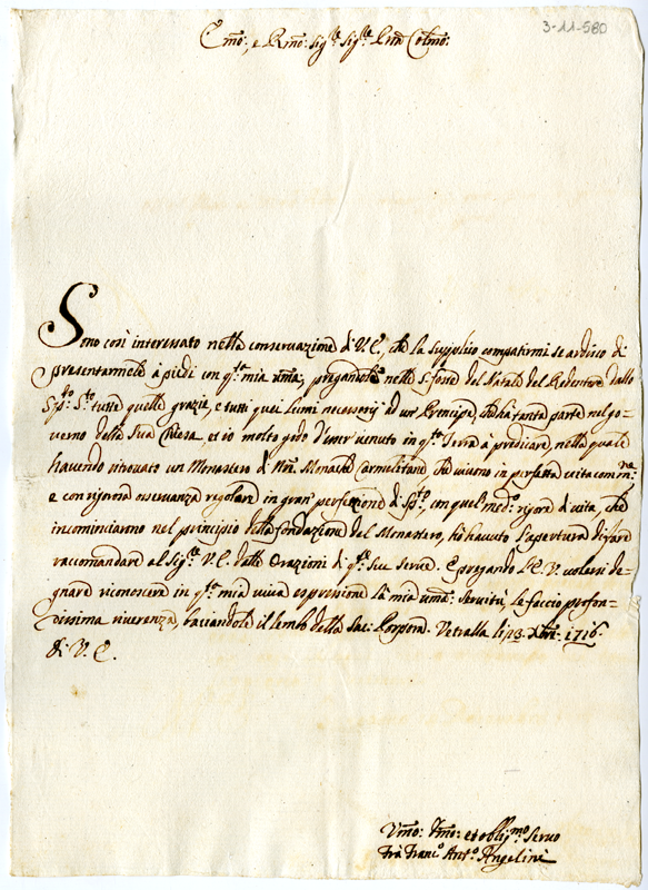 Lettera di fra Francesco Antonio Angelini al cardinale Annibale Albani (1716 dicembre 23)