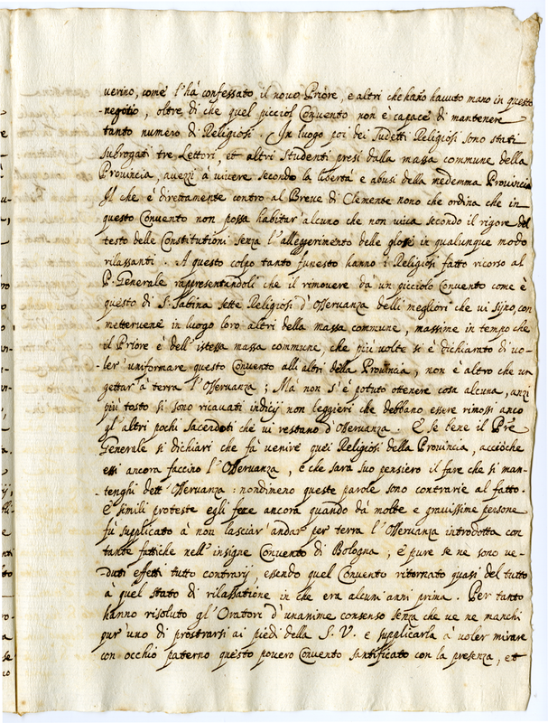 Lettera dei Religiosi del convento di Santa Sabina a Papa Alessandro VIII (1689-1691)